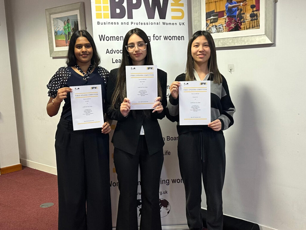 Two College teams represented Cardiff Sixth Form College at the Business and Professional Women’s Public Speaking Competition, taking on formal roles including Chairperson, Speaker and Proposer of the Vote of Thanks with professionalism and poise.